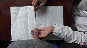 Cum-filled mouth in blowjob finale with realistic dildo scene.