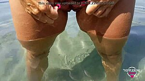 Wow, ragazza nuda si masturba e pisci sulla spiaggia pubblica! 😲