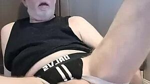 Gay man masturbates intensely, cumming on himself