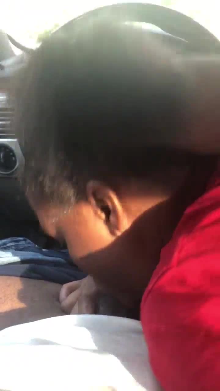Ebony girl gets ass grabbed while deepthroating from behind