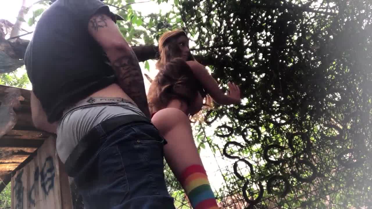 monster cock awaits in backyard for sneaky anal play with tight beauty