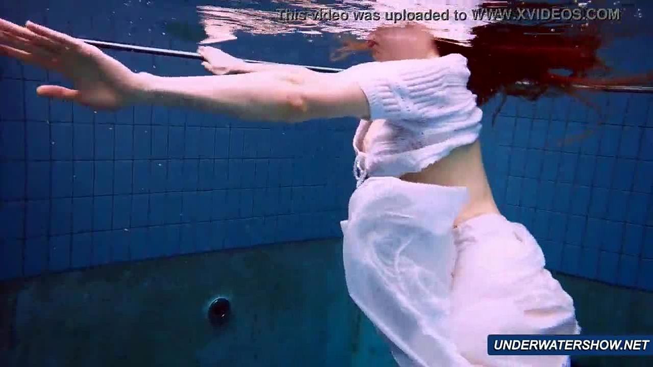 petite clara's small tits shine underwater in pool